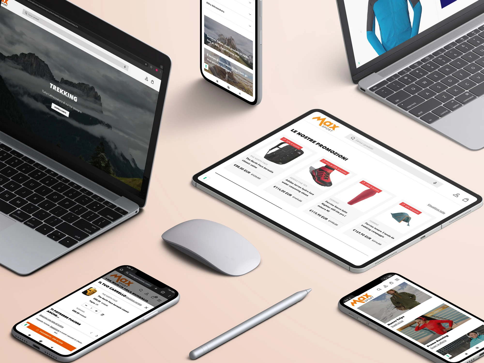 Per Max Sport, abbiamo realizzato un restyling completo del loro e-commerce su Shopify, focalizzandoci su UX e UI per migliorare l’esperienza utente e aumentarne le performance. Inoltre abbiamo integrato il gestionale aziendale per sincronizzare in tempo reale l’inventario e il servizio di spedizione, per garantire ai clienti aggiornamenti costanti sullo stato degli ordini. Il risultato è un’esperienza di acquisto più fluida, efficiente e con un’interfaccia moderna e user-friendly.